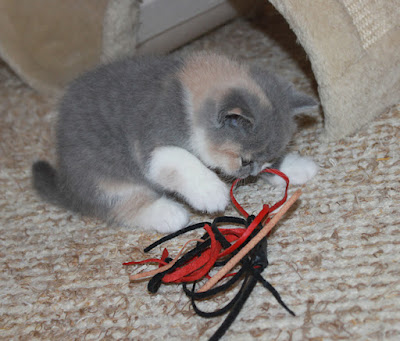 Redan 6 veckor gamla ... halvtid ... sen är det dax att flytta ... hem till förväntansfulla, otåligt väntande familjer. Duktiga gänget. Bor med blogMadame i sovrummet tillsammans med mamma Betty. Klänger i sängen o busar järnet klockan halv tre varje natt. Och blogMadame är såå fördragsam och drar bara täcket över huvudet och skriker bara AAAAAJJJ AAAAJ AJAJAJ när någon rusar genom håret eller sätter tänder o klor i någon utsatt kroppsdel. Och så plötsligt somnar alla på en gång.
